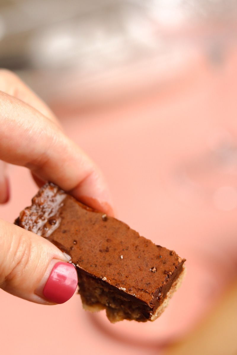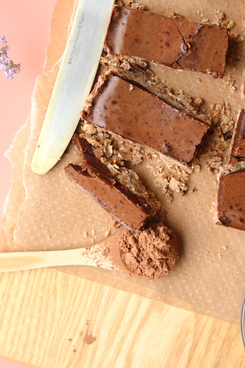 Heerlijke hazelnootrepen met een laagje chocola. Inclusief voedzame ingredienten, dus voor extra energie! Makkelijk te maken, en superlekker. Zonder gluten, koemelk, lactose, soja en ook nog eens vegan.