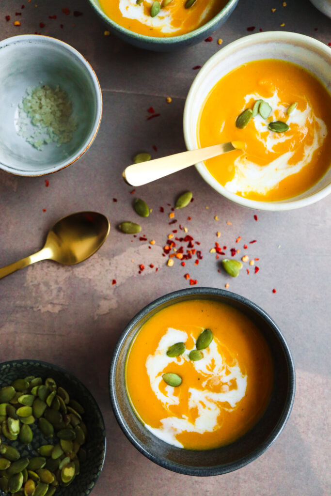 Ook zonder de kokosroom en pompoenpitten is deze soep heerlijk trouwens.