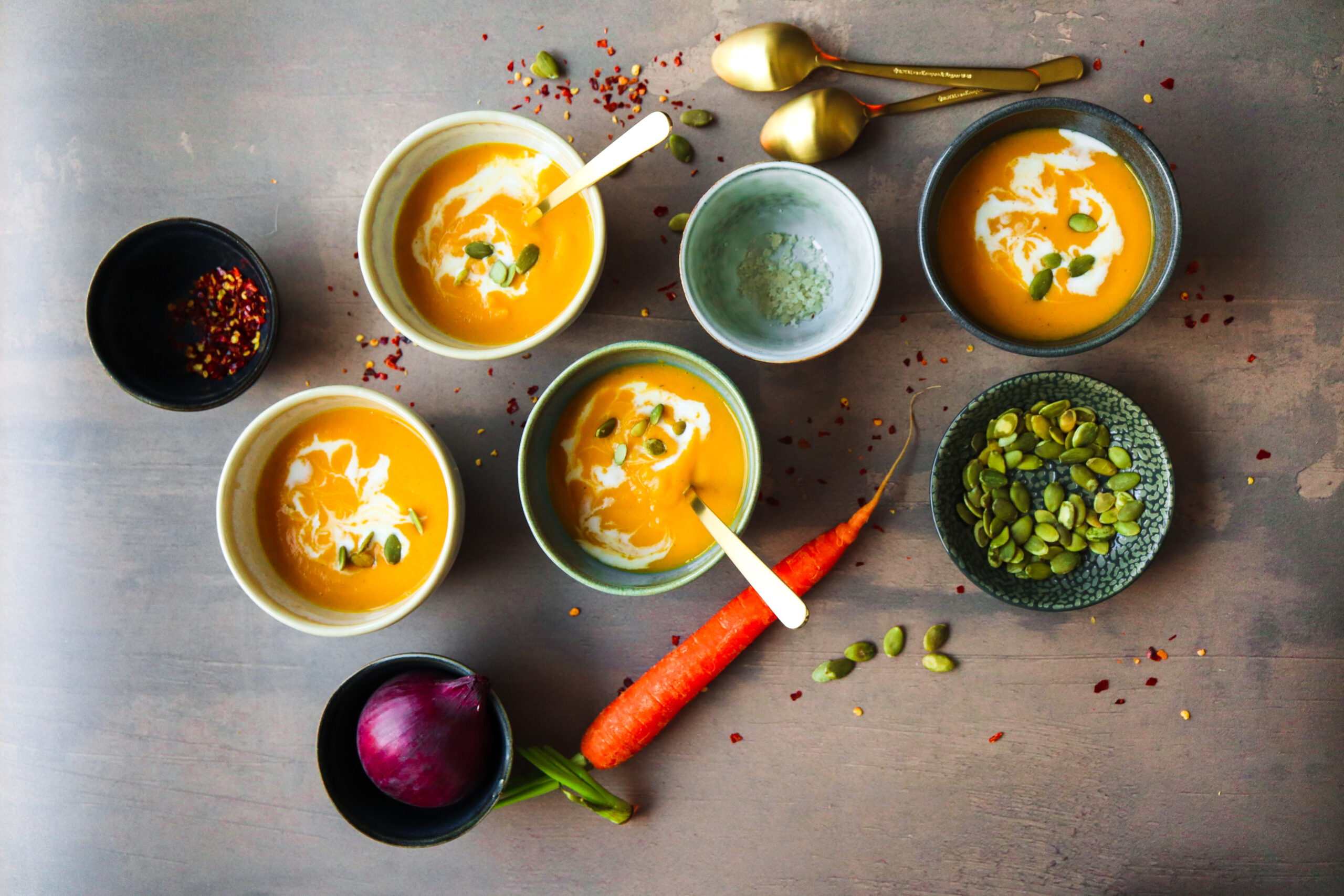 Superlekker, snel en ook nog eens een makkelijke soep met wortel en zoete aardappel. Ideaal voor de lunch of diner.
